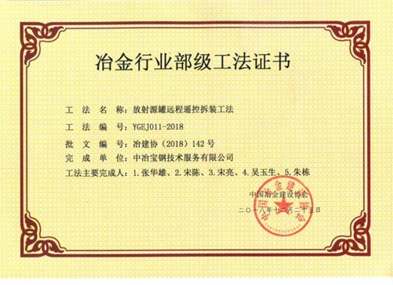 2018年省部级工法证书